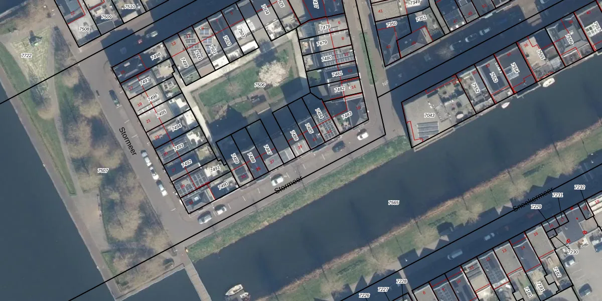Het perceel waarop Stormeer 39 staat heeft een oppervlakte van 95 m². Dit is een klein perceel. De perceeloppervlakte wordt geregistreerd door het Kadaster. Gedetailleerde informatie over de maten van dit perceel kunt u vinden in het rapport Kadastrale kaart met maatvoering van Stormeer 39.