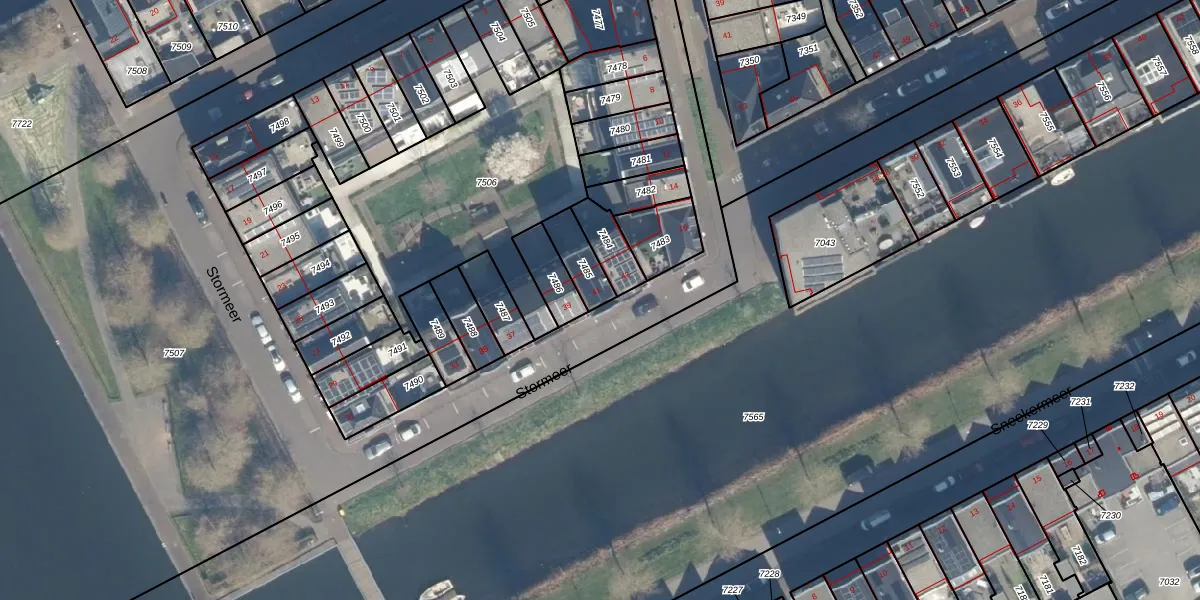 Het perceel waarop Stormeer 41 staat heeft een oppervlakte van 91 m². Dit is een klein perceel. De perceeloppervlakte wordt geregistreerd door het Kadaster. Gedetailleerde informatie over de maten van dit perceel kunt u vinden in het rapport Kadastrale kaart met maatvoering van Stormeer 41.