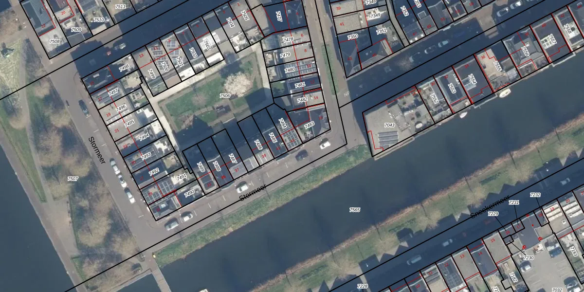 Het perceel waarop Stormeer 43 staat heeft een oppervlakte van 90 m². Dit is een klein perceel. De perceeloppervlakte wordt geregistreerd door het Kadaster. Gedetailleerde informatie over de maten van dit perceel kunt u vinden in het rapport Kadastrale kaart met maatvoering van Stormeer 43.