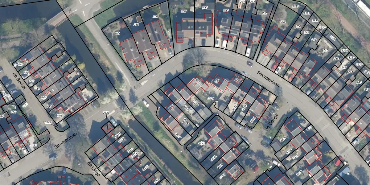 Gebruik de zoekbalk of klik op een perceel voor informatie over de adressen binnen dit perceel.