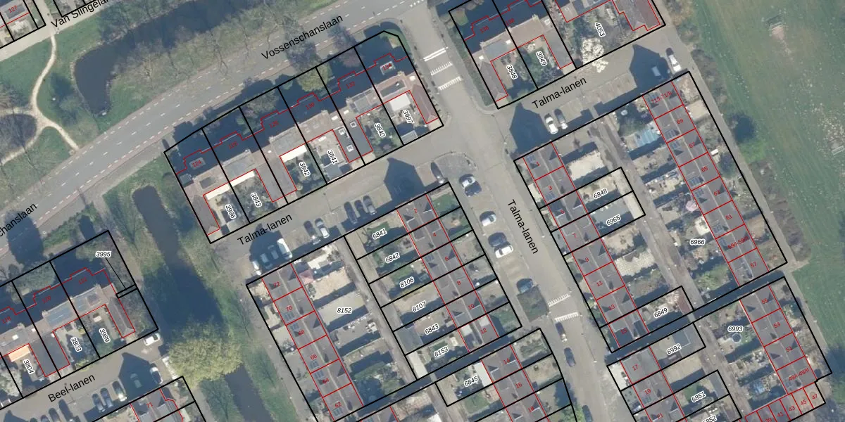 Gebruik de zoekbalk of klik op een perceel voor informatie over de adressen binnen dit perceel.