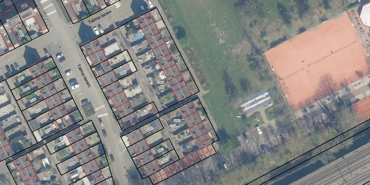 Het perceel waarop Talma-lanen 57 staat heeft een oppervlakte van 1960 m². Dit is een zeer groot perceel. De perceeloppervlakte wordt geregistreerd door het Kadaster. Gedetailleerde informatie over de maten van dit perceel kunt u vinden in het rapport Kadastrale kaart met maatvoering van Talma-lanen 57.