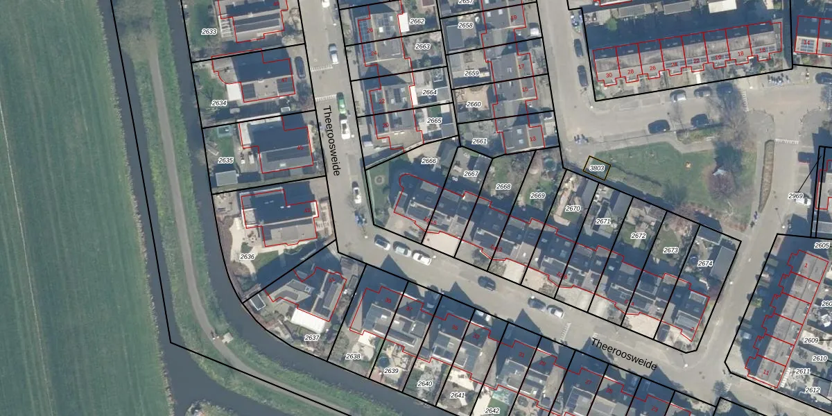 Theeroosweide 18 is gelegen op kadastraal perceel WDN01D2666. Deze kadastrale aanduiding is uniek en wordt gebruikt door het Kadaster om eigendomsrechten en andere zakelijke rechten vast te leggen. Het perceel maakt onderdeel uit van de kadastrale gemeente Woerden.