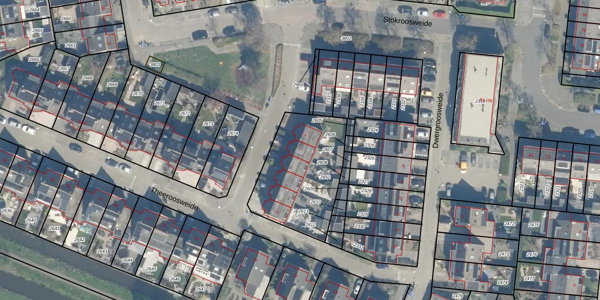 Theeroosweide 3 is gelegen op kadastraal perceel WDN01D2652. Deze kadastrale aanduiding is uniek en wordt gebruikt door het Kadaster om eigendomsrechten en andere zakelijke rechten vast te leggen. Het perceel maakt onderdeel uit van de kadastrale gemeente Woerden.