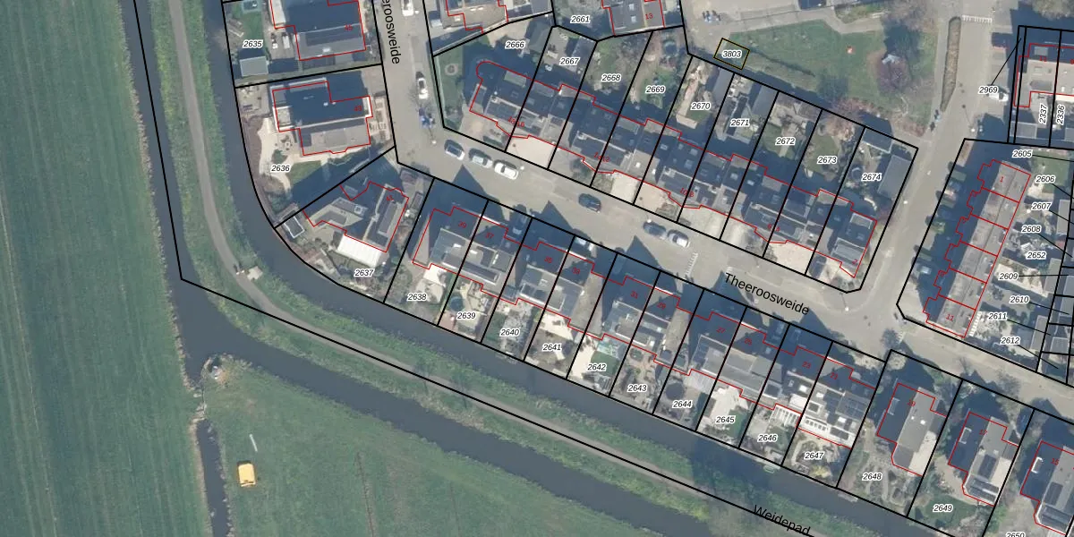 Theeroosweide 35 is gelegen op kadastraal perceel WDN01D2640. Deze kadastrale aanduiding is uniek en wordt gebruikt door het Kadaster om eigendomsrechten en andere zakelijke rechten vast te leggen. Het perceel maakt onderdeel uit van de kadastrale gemeente Woerden.