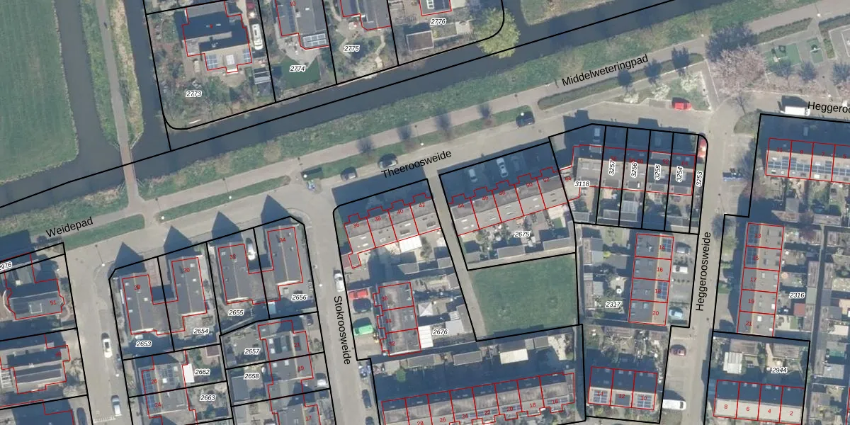 Theeroosweide 42 is gelegen op kadastraal perceel WDN01D2676. Deze kadastrale aanduiding is uniek en wordt gebruikt door het Kadaster om eigendomsrechten en andere zakelijke rechten vast te leggen. Het perceel maakt onderdeel uit van de kadastrale gemeente Woerden.