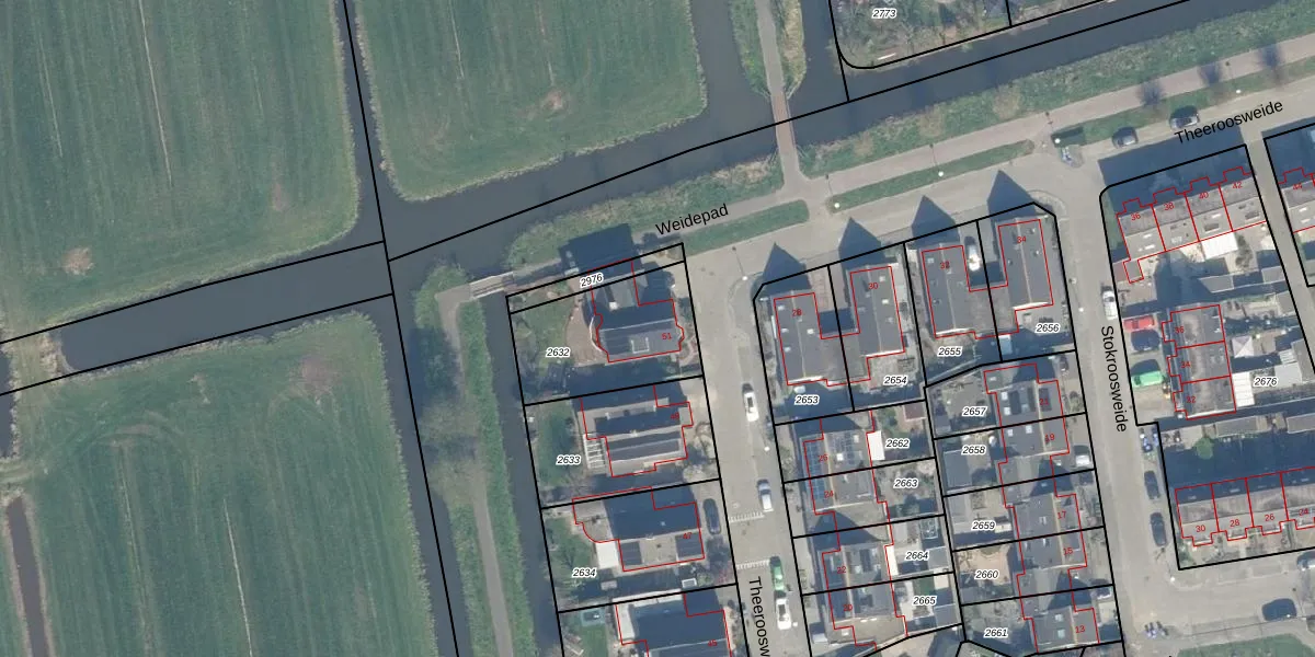 Theeroosweide 51 is gelegen op kadastraal perceel WDN01D2632. Deze kadastrale aanduiding is uniek en wordt gebruikt door het Kadaster om eigendomsrechten en andere zakelijke rechten vast te leggen. Het perceel maakt onderdeel uit van de kadastrale gemeente Woerden.