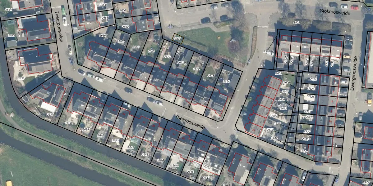 Theeroosweide 6 is gelegen op kadastraal perceel WDN01D2672. Deze kadastrale aanduiding is uniek en wordt gebruikt door het Kadaster om eigendomsrechten en andere zakelijke rechten vast te leggen. Het perceel maakt onderdeel uit van de kadastrale gemeente Woerden.