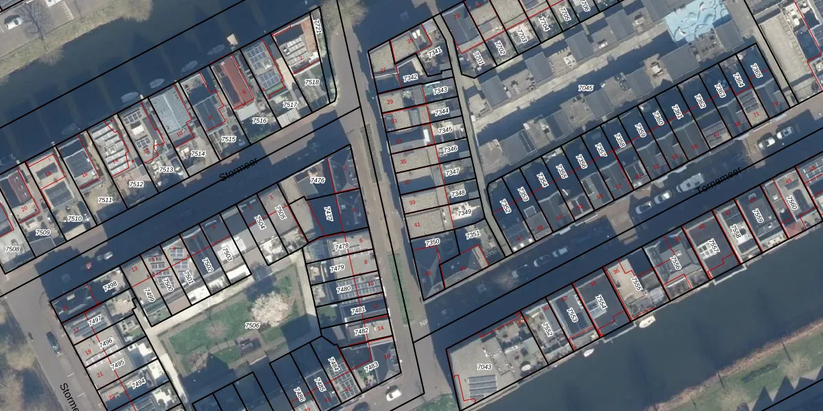 Gebruik de zoekbalk of klik op een perceel voor informatie over de adressen binnen dit perceel.