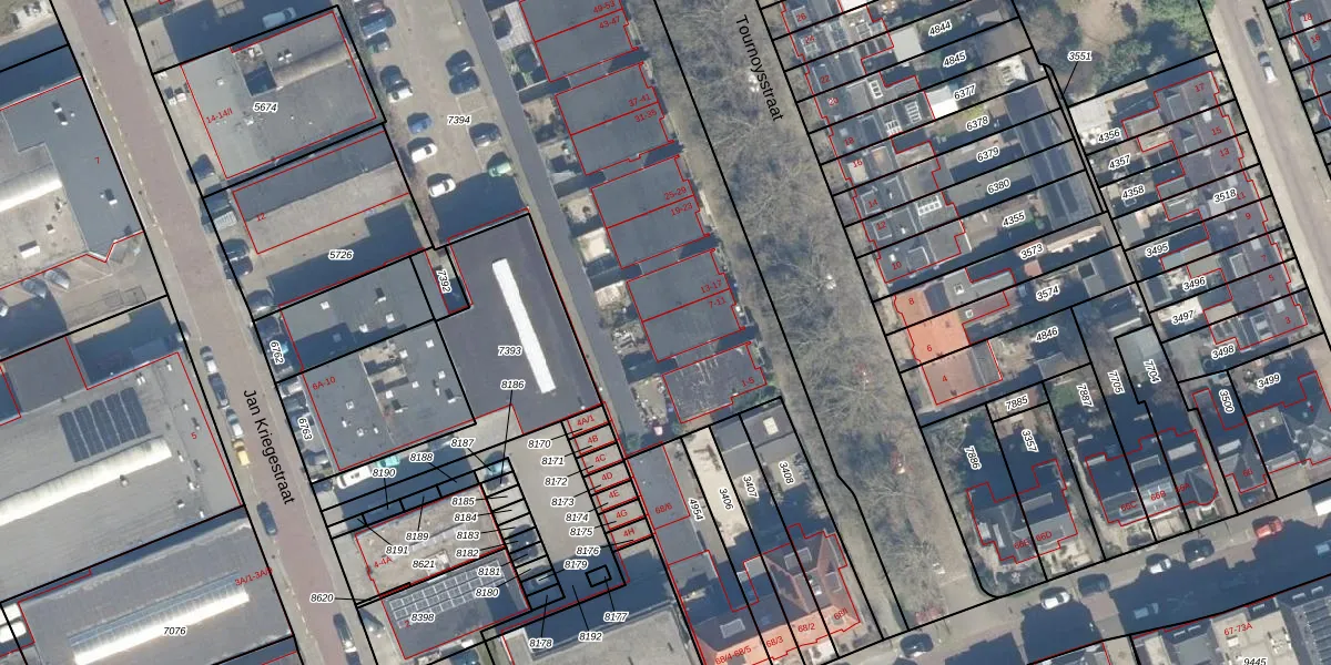 Het perceel waarop Tournoysstraat 7 staat heeft een oppervlakte van 6616 m². Dit is een zeer groot perceel. De perceeloppervlakte wordt geregistreerd door het Kadaster. Gedetailleerde informatie over de maten van dit perceel kunt u vinden in het rapport Kadastrale kaart met maatvoering van Tournoysstraat 7.