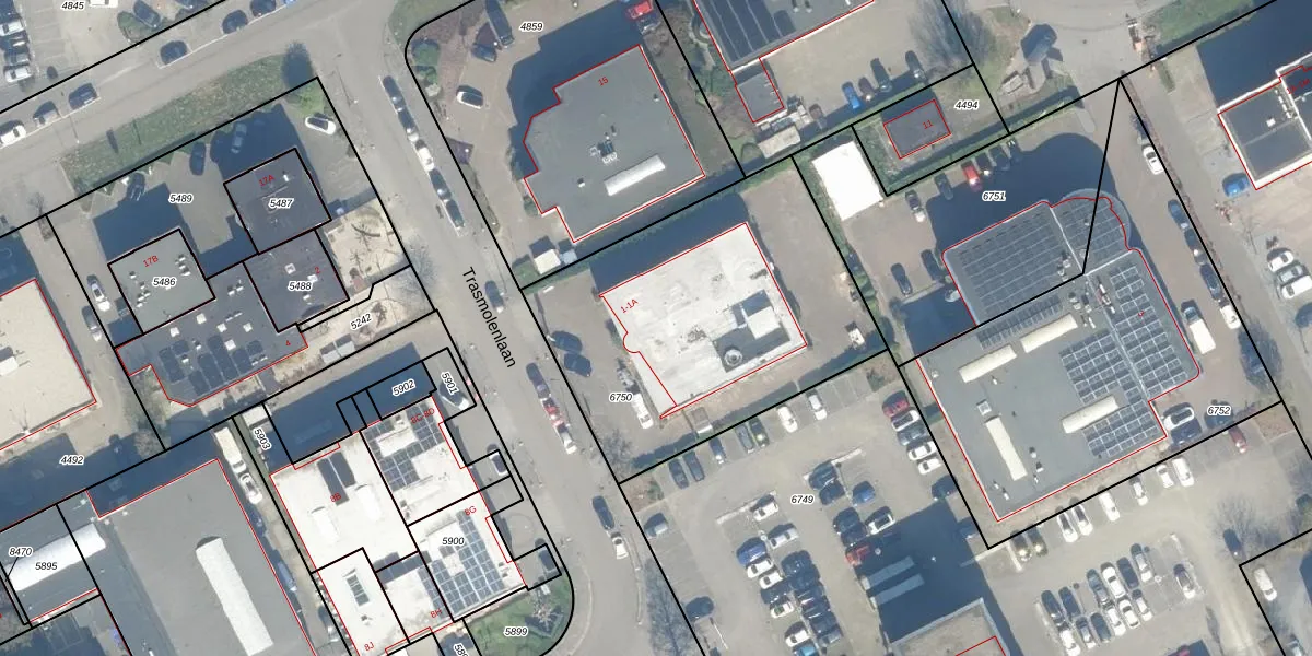 Trasmolenlaan 1 is gelegen op kadastraal perceel WDN01A6750. Deze kadastrale aanduiding is uniek en wordt gebruikt door het Kadaster om eigendomsrechten en andere zakelijke rechten vast te leggen. Het perceel maakt onderdeel uit van de kadastrale gemeente Woerden.