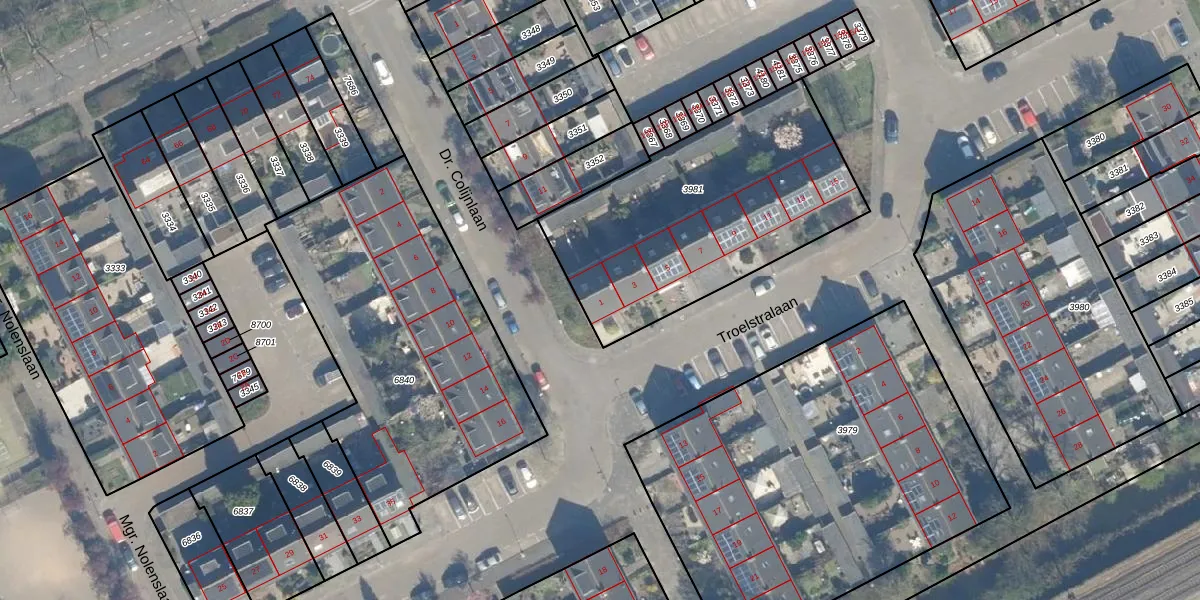 Troelstralaan 1 is gelegen op kadastraal perceel WDN01A3981. Deze kadastrale aanduiding is uniek en wordt gebruikt door het Kadaster om eigendomsrechten en andere zakelijke rechten vast te leggen. Het perceel maakt onderdeel uit van de kadastrale gemeente Woerden.