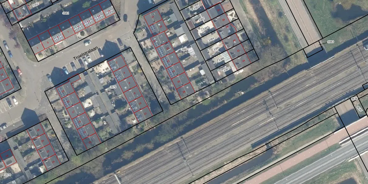 Troelstralaan 28 is gelegen op kadastraal perceel WDN01A3980. Deze kadastrale aanduiding is uniek en wordt gebruikt door het Kadaster om eigendomsrechten en andere zakelijke rechten vast te leggen. Het perceel maakt onderdeel uit van de kadastrale gemeente Woerden.