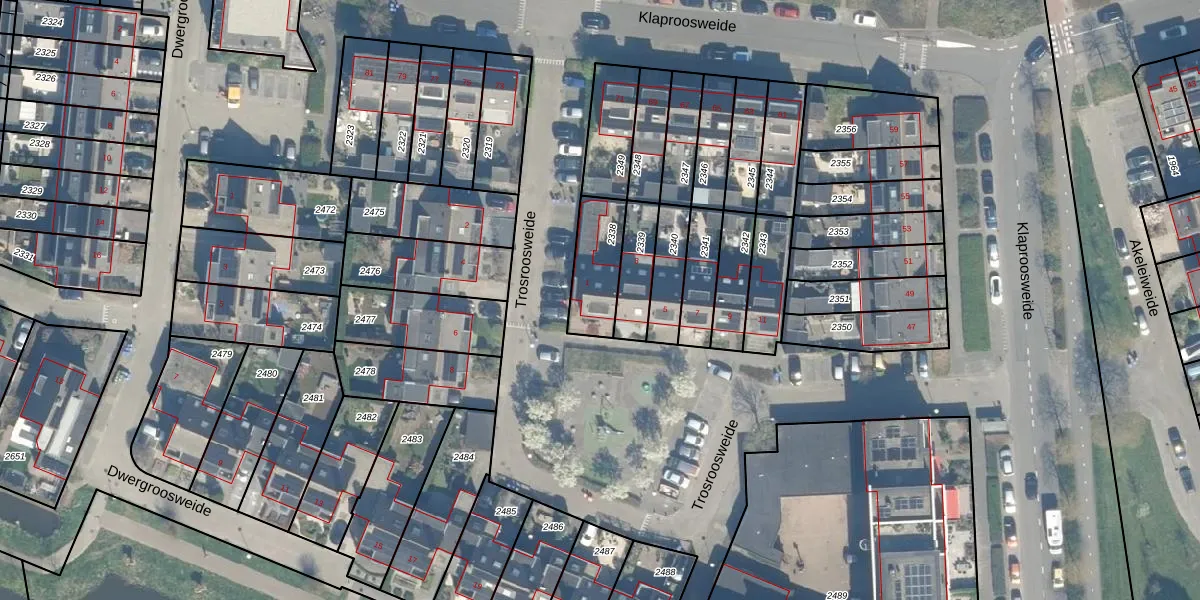 Het perceel waarop Trosroosweide 1 staat heeft een oppervlakte van 175 m². Dit is een middelgroot perceel. De perceeloppervlakte wordt geregistreerd door het Kadaster. Gedetailleerde informatie over de maten van dit perceel kunt u vinden in het rapport Kadastrale kaart met maatvoering van Trosroosweide 1.