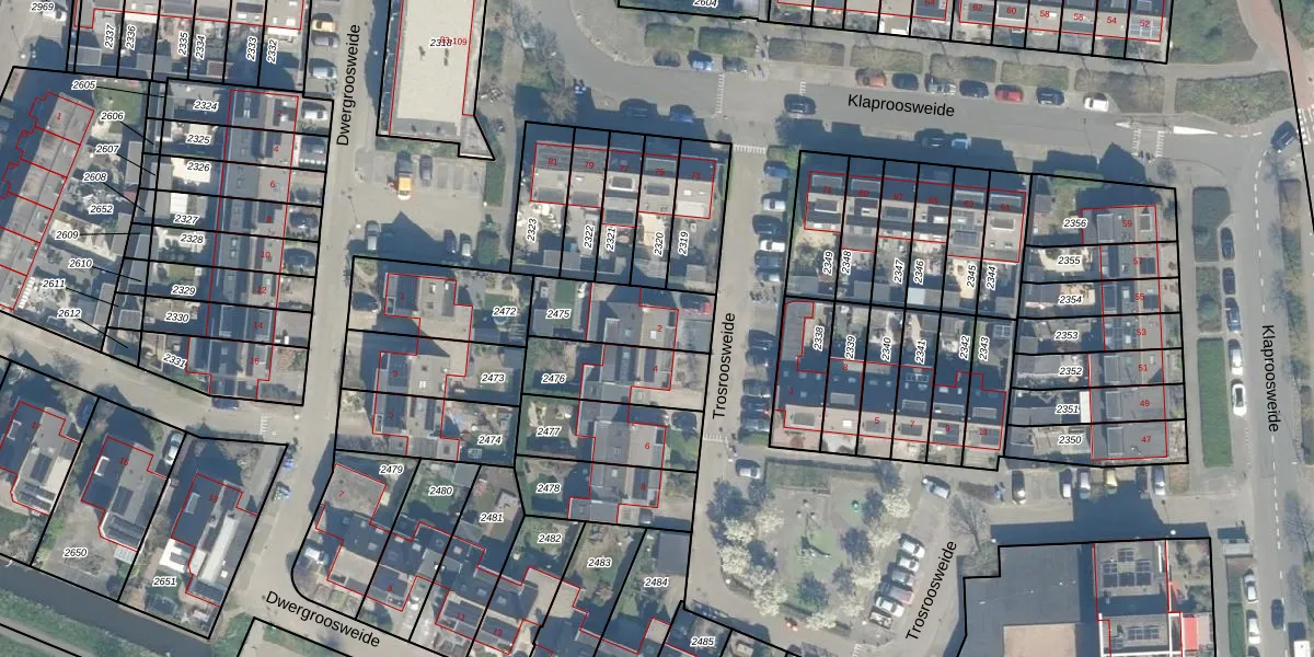 Het perceel waarop Trosroosweide 2 staat heeft een oppervlakte van 257 m². Dit is een middelgroot perceel. De perceeloppervlakte wordt geregistreerd door het Kadaster. Gedetailleerde informatie over de maten van dit perceel kunt u vinden in het rapport Kadastrale kaart met maatvoering van Trosroosweide 2.