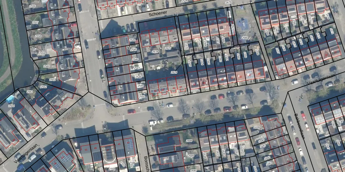 Vaartuigenlaan 46 is gelegen op kadastraal perceel WDN01D2678. Deze kadastrale aanduiding is uniek en wordt gebruikt door het Kadaster om eigendomsrechten en andere zakelijke rechten vast te leggen. Het perceel maakt onderdeel uit van de kadastrale gemeente Woerden.