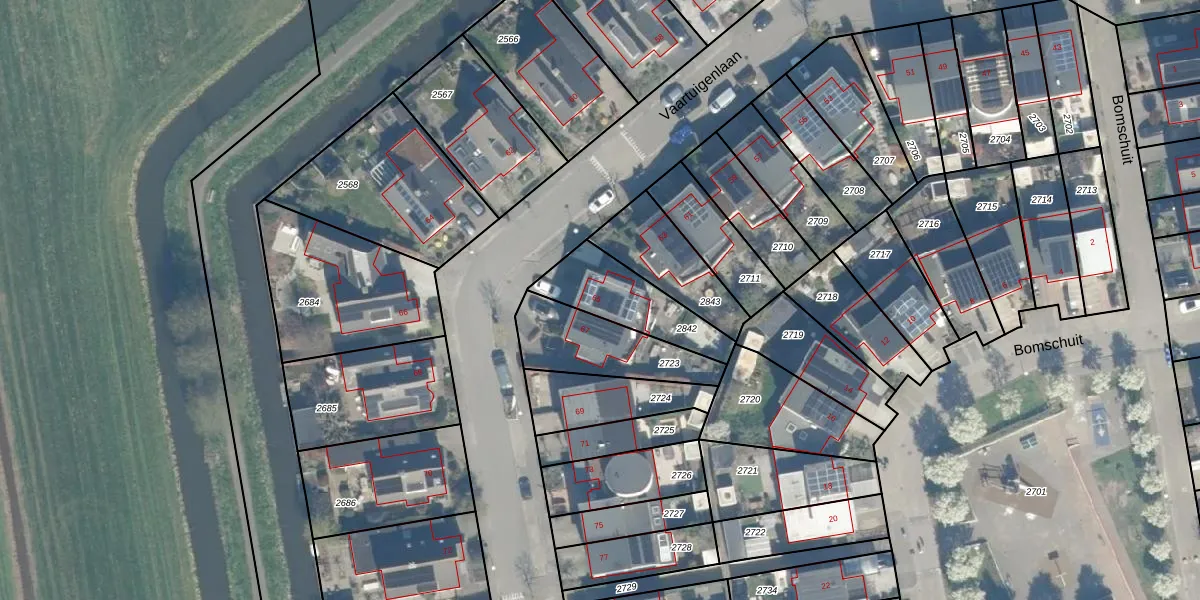 Vaartuigenlaan 65 is gelegen op kadastraal perceel WDN01D2842. Deze kadastrale aanduiding is uniek en wordt gebruikt door het Kadaster om eigendomsrechten en andere zakelijke rechten vast te leggen. Het perceel maakt onderdeel uit van de kadastrale gemeente Woerden.