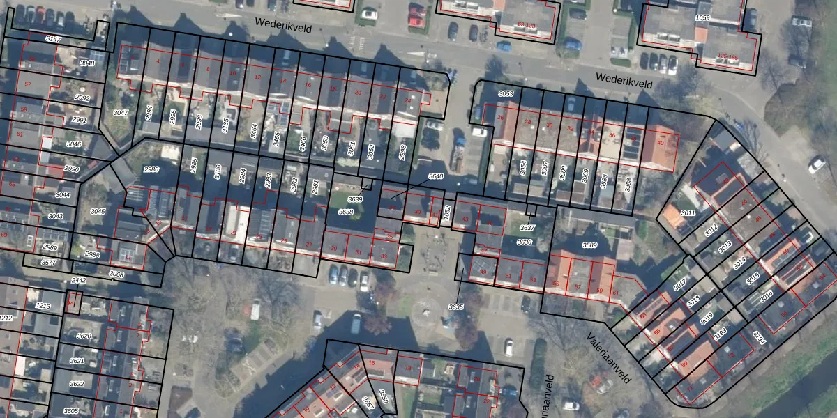 Valeriaanveld 39 is gelegen op kadastraal perceel WDN01D3638. Deze kadastrale aanduiding is uniek en wordt gebruikt door het Kadaster om eigendomsrechten en andere zakelijke rechten vast te leggen. Het perceel maakt onderdeel uit van de kadastrale gemeente Woerden.