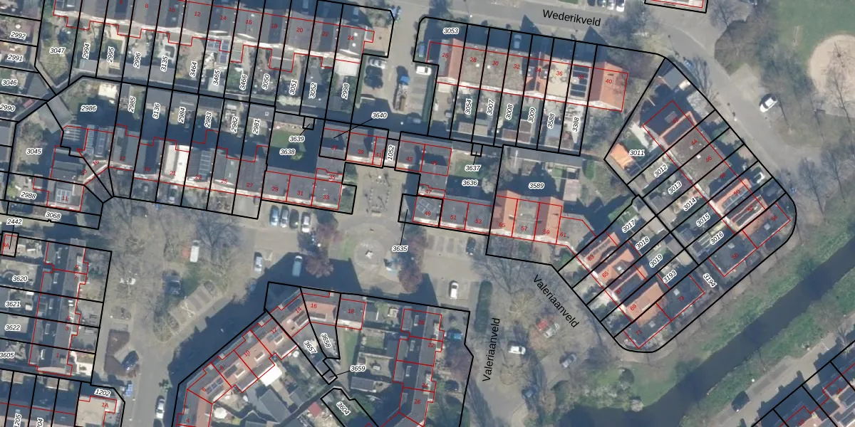 Valeriaanveld 49 is gelegen op kadastraal perceel WDN01D3635. Deze kadastrale aanduiding is uniek en wordt gebruikt door het Kadaster om eigendomsrechten en andere zakelijke rechten vast te leggen. Het perceel maakt onderdeel uit van de kadastrale gemeente Woerden.