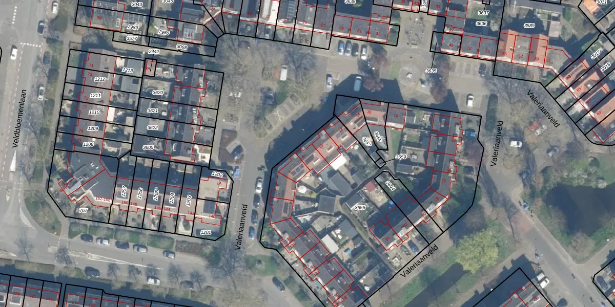 Valeriaanveld 8 is gelegen op kadastraal perceel WDN01D3656. Deze kadastrale aanduiding is uniek en wordt gebruikt door het Kadaster om eigendomsrechten en andere zakelijke rechten vast te leggen. Het perceel maakt onderdeel uit van de kadastrale gemeente Woerden.