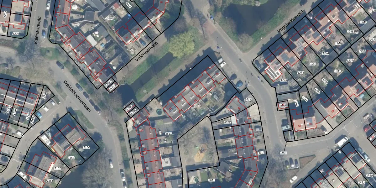 Het perceel waarop Valeriaanveld 81 staat heeft een oppervlakte van 2194 m². Dit is een zeer groot perceel. De perceeloppervlakte wordt geregistreerd door het Kadaster. Gedetailleerde informatie over de maten van dit perceel kunt u vinden in het rapport Kadastrale kaart met maatvoering van Valeriaanveld 81.