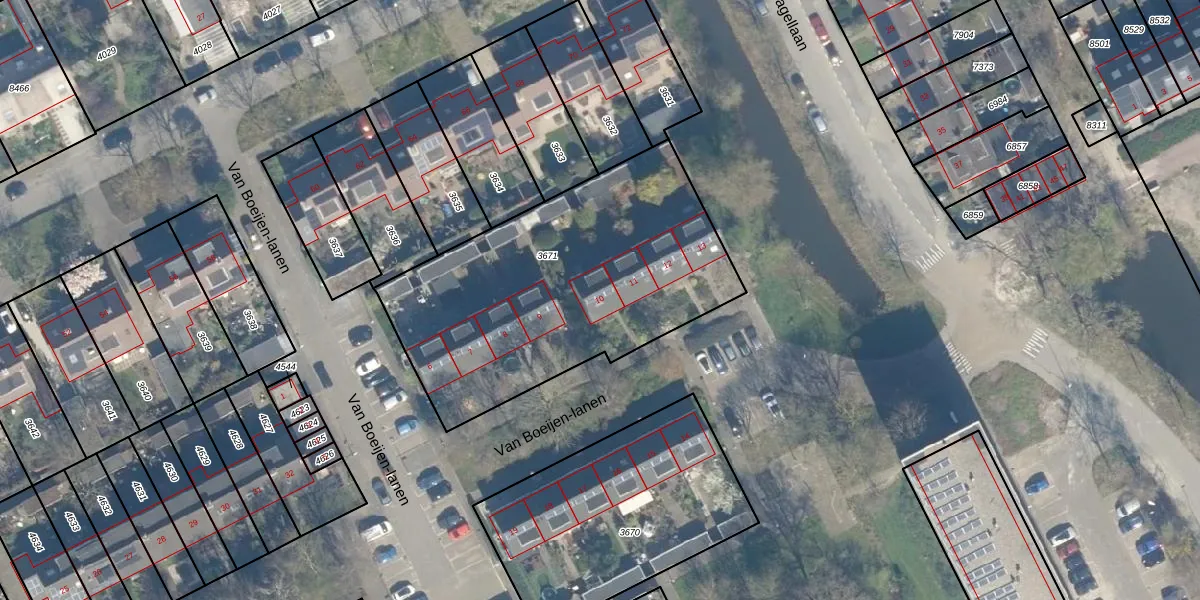 Van Boeijen-lanen 10 is gelegen op kadastraal perceel WDN01A3671. Deze kadastrale aanduiding is uniek en wordt gebruikt door het Kadaster om eigendomsrechten en andere zakelijke rechten vast te leggen. Het perceel maakt onderdeel uit van de kadastrale gemeente Woerden.