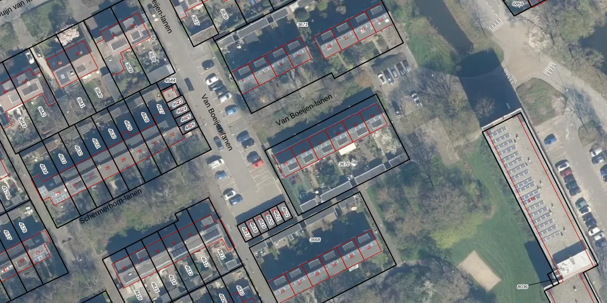 Van Boeijen-lanen 18 is gelegen op kadastraal perceel WDN01A3670. Deze kadastrale aanduiding is uniek en wordt gebruikt door het Kadaster om eigendomsrechten en andere zakelijke rechten vast te leggen. Het perceel maakt onderdeel uit van de kadastrale gemeente Woerden.