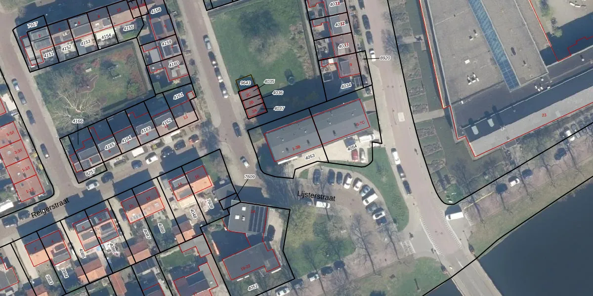 Het adres ligt op het perceel WDN01-B-4053, dat zich in de kadastrale gemeente Woerden bevindt. Het perceel is 396 m² groot. Dat is kleiner dan de gemiddelde perceeloppervlakte in Woerden, dat op 1325,81 m² ligt. De grootste perceeloppervlakte in de kadastrale gemeente is 55,0 ha. De kleinste oppervlakte bedraagt 0 m². Op het perceel zijn 6 adressen aanwezig. De laatste wijziging in het de Basisregistratie Kadaster (BRK) was op 11-09-2009.