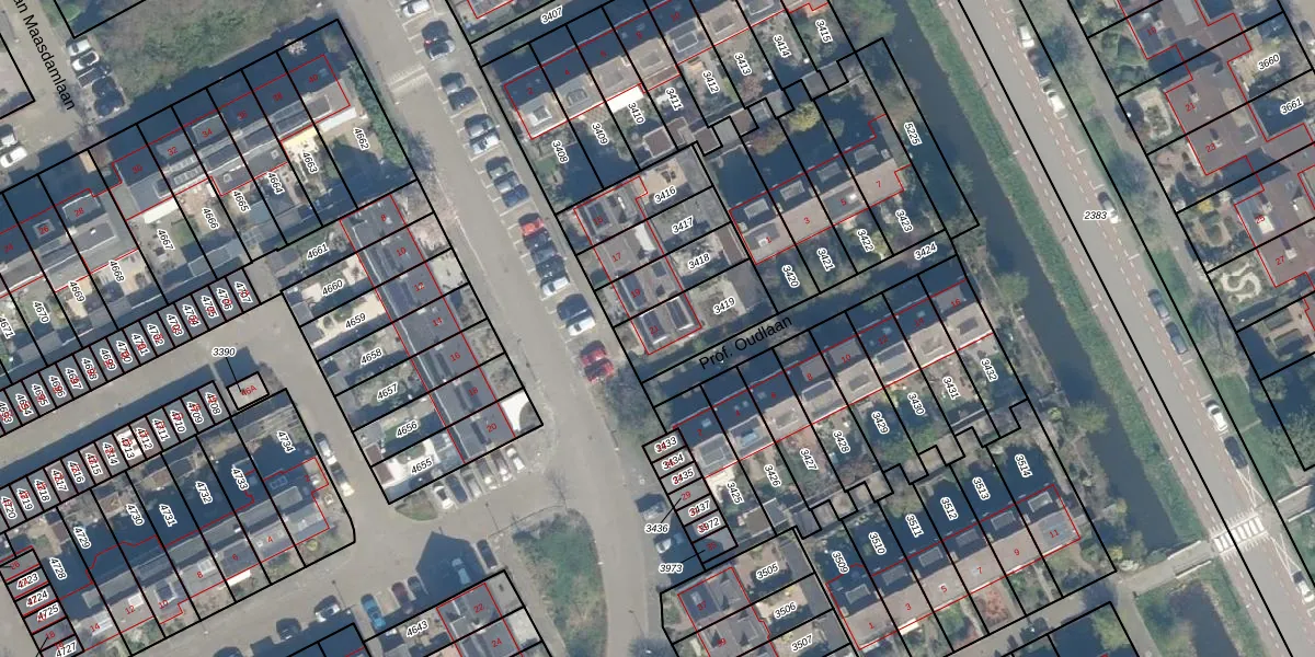 Gebruik de zoekbalk of klik op een perceel voor informatie over de adressen binnen dit perceel.