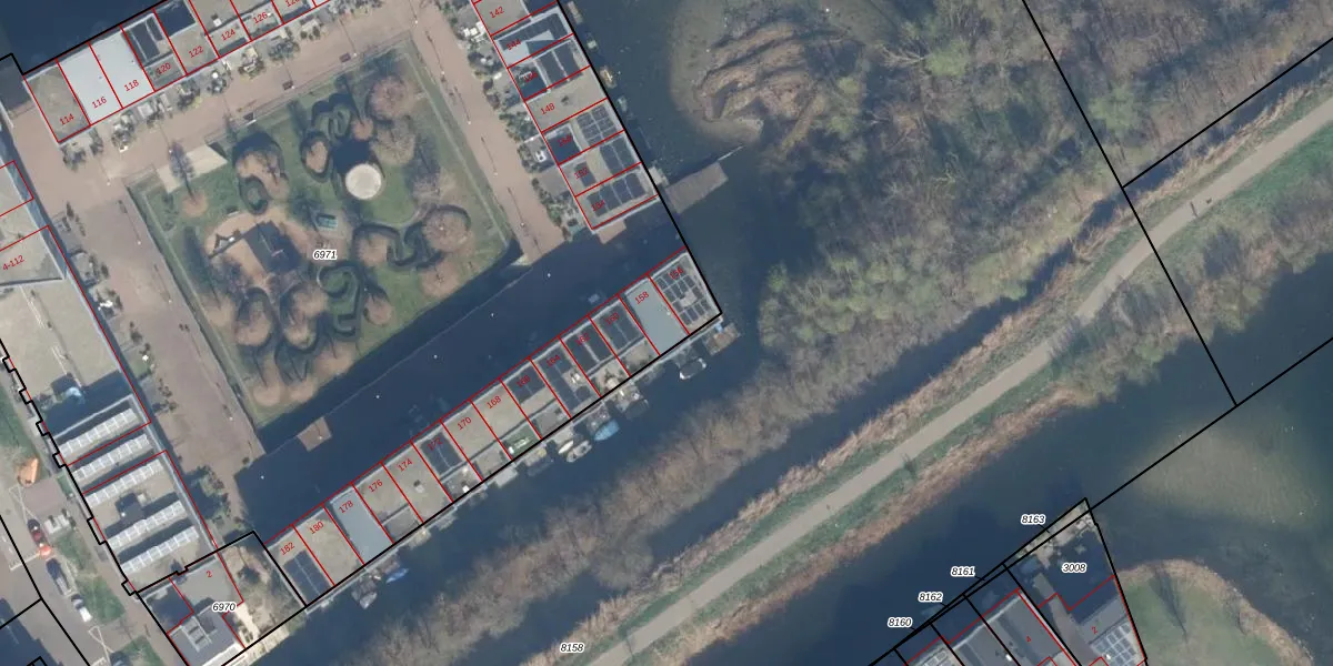 Het adres is gelegen op perceel 6971 in de sectie A en de kadastrale gemeente Woerden. De kadastrale aanduiding is aldus WDN01-A-6971. Het perceel is met 8230 m² relatief groot. Het gemiddelde ligt in de kadastrale gemeente Woerden op 1325,81 m². Het grootste perceel in de kadastrale gemeente is 55,0 ha. Het kleinste perceel heeft een oppervlakte van 0 m². Op het perceel liggen in totaal 89 adressen. In de Basisregistratie Kadaster (BRK) werden de grenzen van het perceel geregistreerd op 18-11-2010.