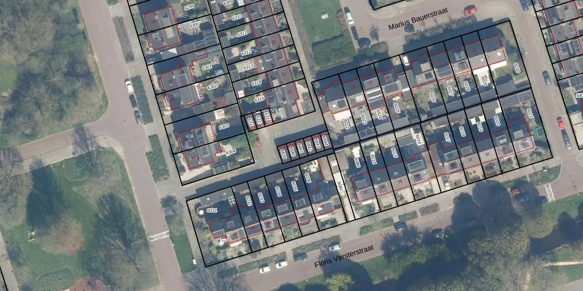 Gebruik de zoekbalk of klik op een perceel voor informatie over de adressen binnen dit perceel.