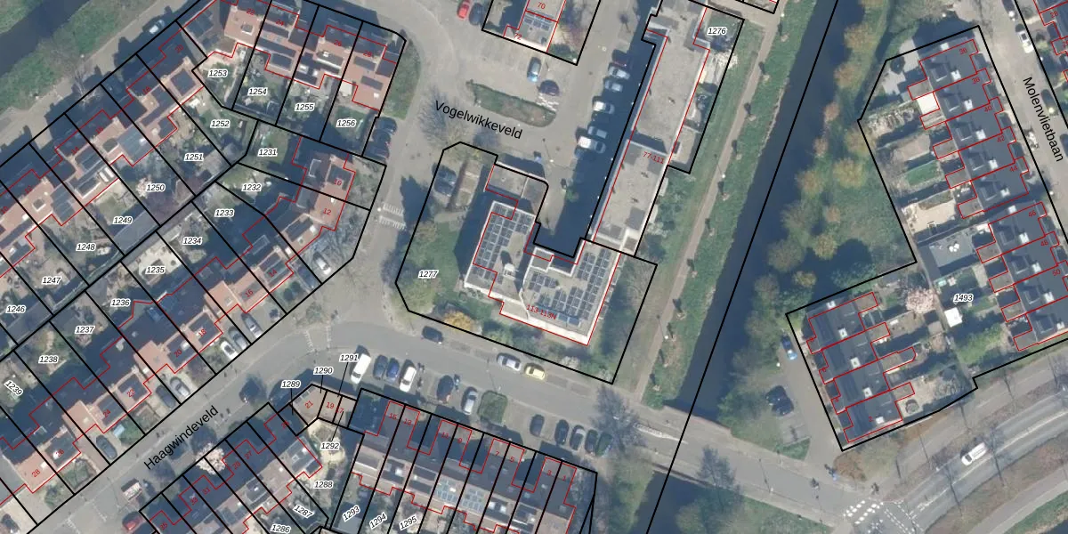Het perceel waarop het adres ligt is WDN01-D-1277. De afkorting 'WDN01' staat voor kadastrale gemeente Woerden. De gemiddelde perceelgrootte in Woerden is 1326,34 m². Dit perceel is kleiner: de perceeloppervlakte bedraagt 1200 m². Het kleinste perceel in de kadastrale gemeente is 0 m² groot. De grootste perceeloppervlakte is 55,0 ha. Op het perceel liggen in totaal 13 adressen. De huidige grenzen van het perceel zijn digitaal in de Basisregistratie Kadaster (BRK) geregistreerd op 21-10-2003.