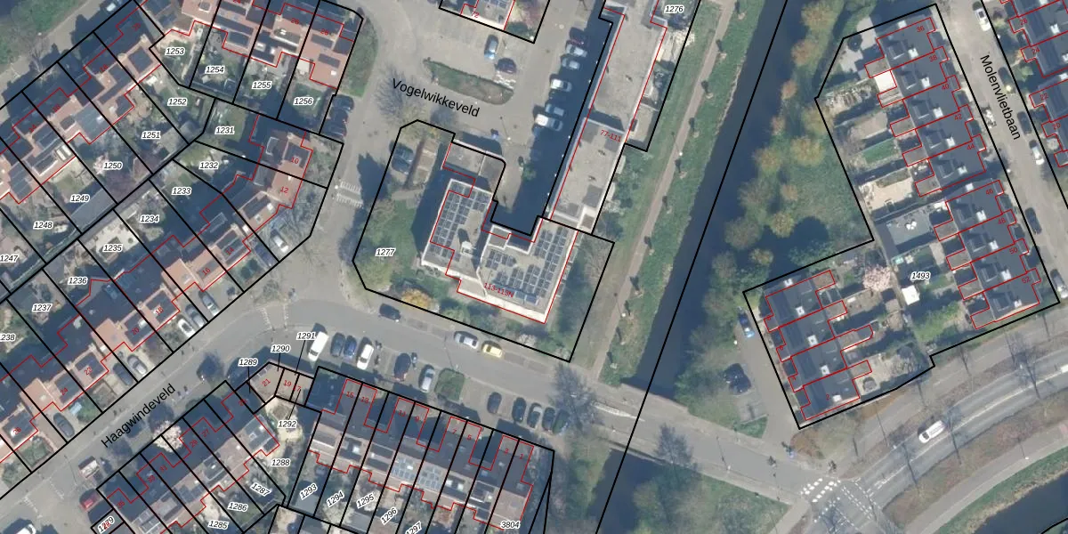 Het adres is gelegen op perceel 1277 in de sectie D en de kadastrale gemeente Woerden. De kadastrale aanduiding is aldus WDN01-D-1277. Het perceel is kleiner dan gemiddeld in Woerden. Het perceel is 1200 m² groot, terwijl het gemiddelde ligt op 1326,34 m². Het kleinste perceel in de kadastrale gemeente is 0 m² groot. De grootste perceeloppervlakte is 55,0 ha. Er zijn 13 adressen aanwezig op het perceel. De huidige grenzen van het perceel zijn digitaal in de Basisregistratie Kadaster (BRK) geregistreerd op 21-10-2003.