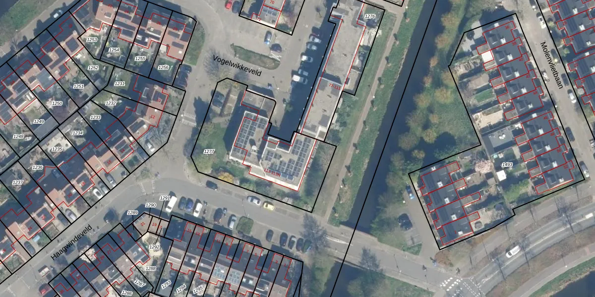 Het adres is gelegen op perceel 1277 in de sectie D en de kadastrale gemeente Woerden. De kadastrale aanduiding is aldus WDN01-D-1277. Het perceel is kleiner dan gemiddeld in Woerden. Het perceel is 1200 m² groot, terwijl het gemiddelde ligt op 1326,34 m². Het kleinste perceel in de kadastrale gemeente is 0 m² groot. De grootste perceeloppervlakte is 55,0 ha. Er zijn 13 adressen aanwezig op het perceel. In de Basisregistratie Kadaster (BRK) werden de grenzen van het perceel geregistreerd op 21-10-2003.