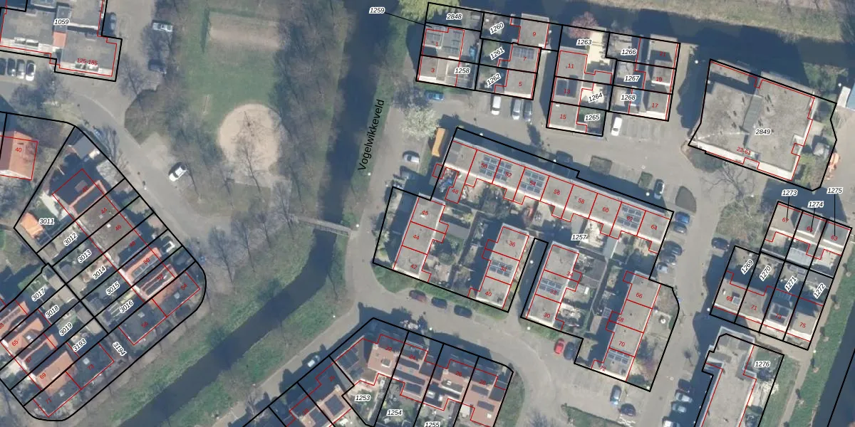 Vogelwikkeveld 46 is gelegen op kadastraal perceel WDN01D1257. Deze kadastrale aanduiding is uniek en wordt gebruikt door het Kadaster om eigendomsrechten en andere zakelijke rechten vast te leggen. Het perceel maakt onderdeel uit van de kadastrale gemeente Woerden.