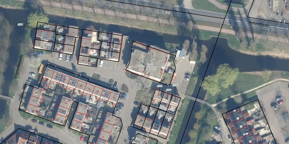 Het perceel waarop het adres ligt is WDN01-D-2849. De afkorting 'WDN01' staat voor kadastrale gemeente Woerden. De gemiddelde perceelgrootte in Woerden is 1326,43 m². Dit perceel is kleiner: de perceeloppervlakte bedraagt 660 m². Het grootste perceel in de kadastrale gemeente is 55,0 ha. Het kleinste perceel heeft een oppervlakte van 0 m². Er zijn 20 adressen aanwezig op het perceel. De huidige grenzen van het perceel zijn digitaal in de Basisregistratie Kadaster (BRK) geregistreerd op 26-08-2011.