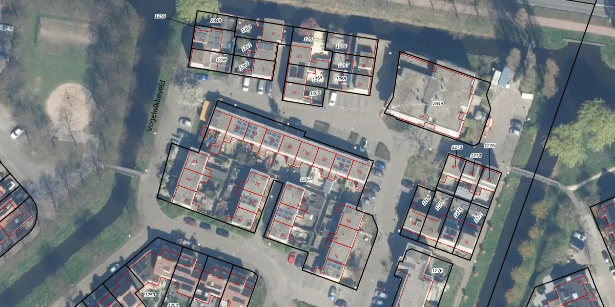 Het perceel waarop Vogelwikkeveld 58 staat heeft een oppervlakte van 2324 m². Dit is een zeer groot perceel. De perceeloppervlakte wordt geregistreerd door het Kadaster. Gedetailleerde informatie over de maten van dit perceel kunt u vinden in het rapport Kadastrale kaart met maatvoering van Vogelwikkeveld 58.
