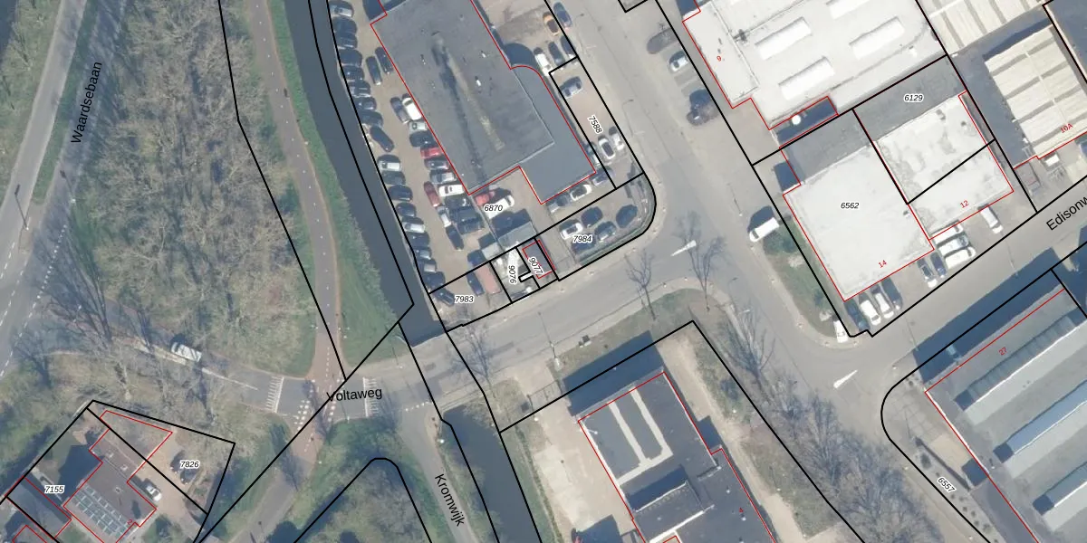 Voltaweg 1 is gelegen op kadastraal perceel WDN01B9077. Deze kadastrale aanduiding is uniek en wordt gebruikt door het Kadaster om eigendomsrechten en andere zakelijke rechten vast te leggen. Het perceel maakt onderdeel uit van de kadastrale gemeente Woerden.