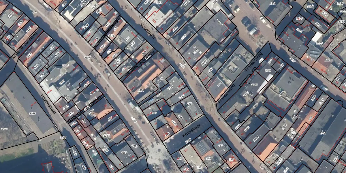 Het perceel waarop Voorstraat 38-I staat heeft een oppervlakte van 195 m². Dit is een middelgroot perceel. De perceeloppervlakte wordt geregistreerd door het Kadaster. Gedetailleerde informatie over de maten van dit perceel kunt u vinden in het rapport Kadastrale kaart met maatvoering van Voorstraat 38-I.