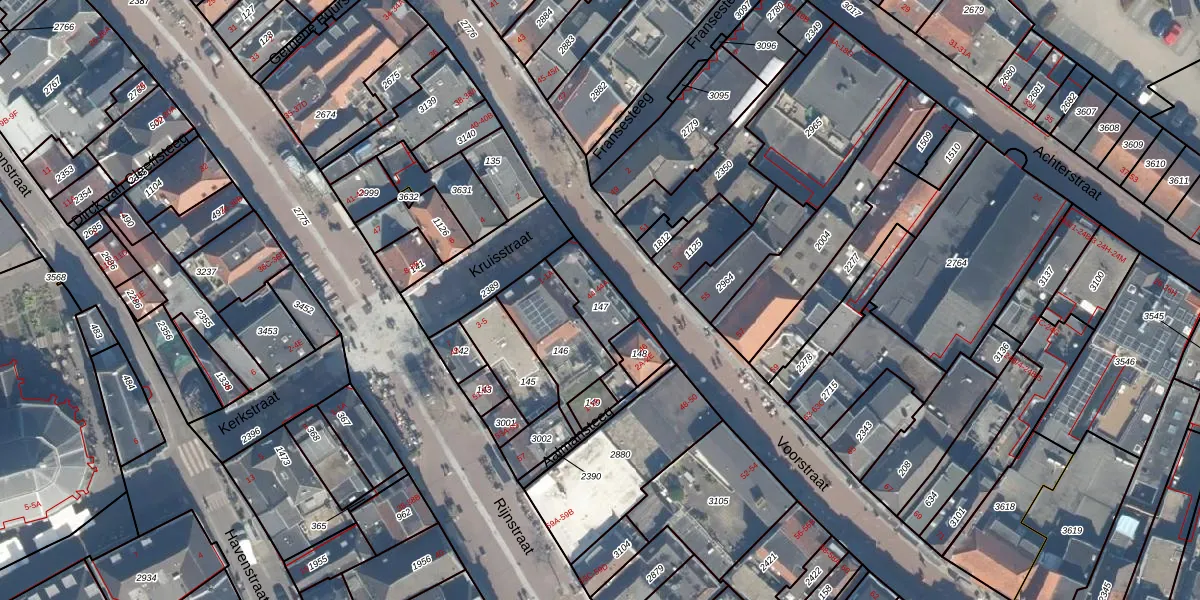 Voorstraat 44-A is gelegen op kadastraal perceel WDN01C147. Deze kadastrale aanduiding is uniek en wordt gebruikt door het Kadaster om eigendomsrechten en andere zakelijke rechten vast te leggen. Het perceel maakt onderdeel uit van de kadastrale gemeente Woerden.
