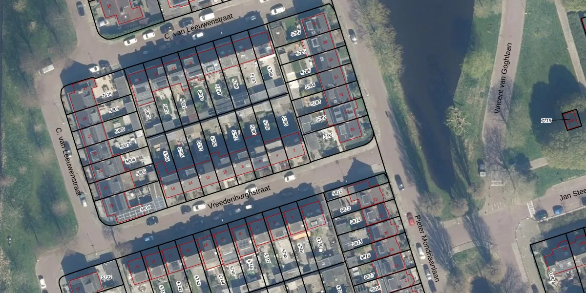 Gebruik de zoekbalk of klik op een perceel voor informatie over de adressen binnen dit perceel.