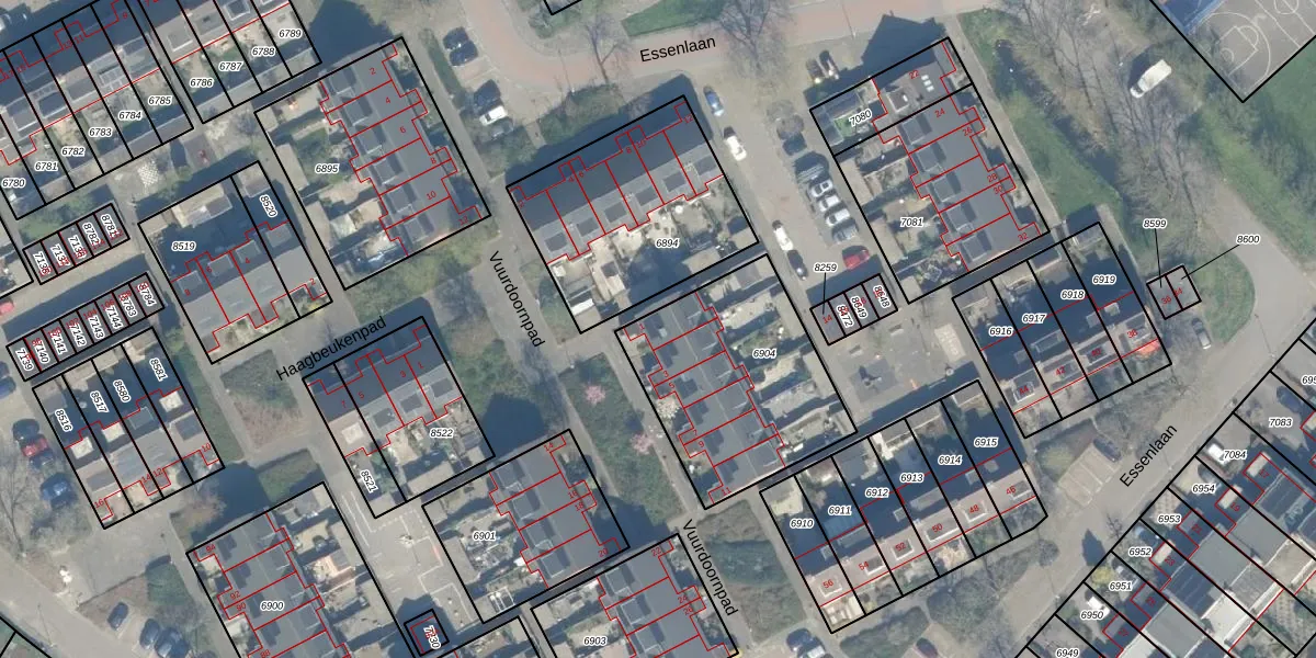Vuurdoornpad 1 is gelegen op kadastraal perceel WDN01B6904. Deze kadastrale aanduiding is uniek en wordt gebruikt door het Kadaster om eigendomsrechten en andere zakelijke rechten vast te leggen. Het perceel maakt onderdeel uit van de kadastrale gemeente Woerden.