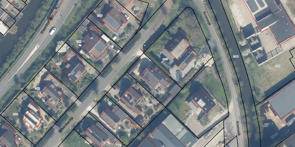 Waardsedijk 1 is gelegen op kadastraal perceel WDN01B8213. Deze kadastrale aanduiding is uniek en wordt gebruikt door het Kadaster om eigendomsrechten en andere zakelijke rechten vast te leggen. Het perceel maakt onderdeel uit van de kadastrale gemeente Woerden.