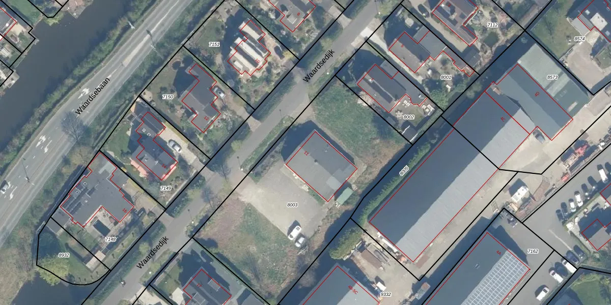 Waardsedijk 11 is gelegen op kadastraal perceel WDN01B8003. Deze kadastrale aanduiding is uniek en wordt gebruikt door het Kadaster om eigendomsrechten en andere zakelijke rechten vast te leggen. Het perceel maakt onderdeel uit van de kadastrale gemeente Woerden.