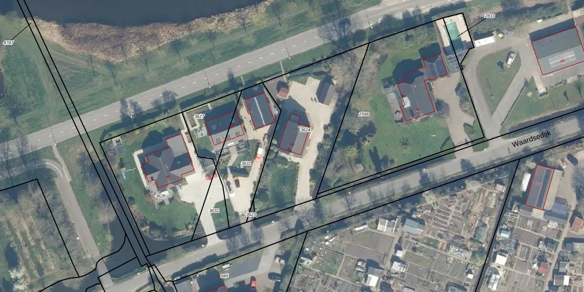 Waardsedijk 44 is gelegen op kadastraal perceel WDN01D3624. Deze kadastrale aanduiding is uniek en wordt gebruikt door het Kadaster om eigendomsrechten en andere zakelijke rechten vast te leggen. Het perceel maakt onderdeel uit van de kadastrale gemeente Woerden.