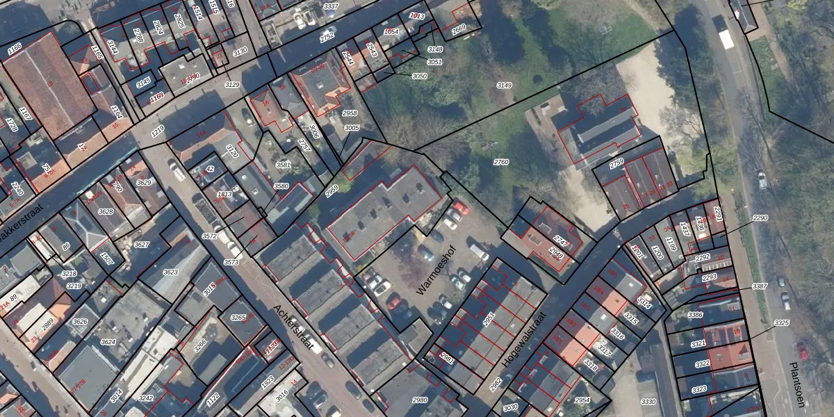 Het perceel waarop Warmoeshof 19 staat heeft een oppervlakte van 1328 m². Dit is een zeer groot perceel. De perceeloppervlakte wordt geregistreerd door het Kadaster. Gedetailleerde informatie over de maten van dit perceel kunt u vinden in het rapport Kadastrale kaart met maatvoering van Warmoeshof 19.