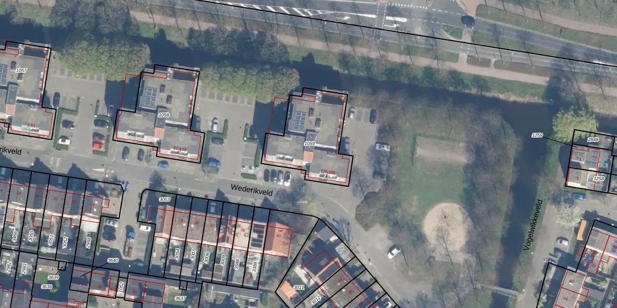 Wederikveld 143 is gelegen op kadastraal perceel WDN01D1059. Deze kadastrale aanduiding is uniek en wordt gebruikt door het Kadaster om eigendomsrechten en andere zakelijke rechten vast te leggen. Het perceel maakt onderdeel uit van de kadastrale gemeente Woerden.