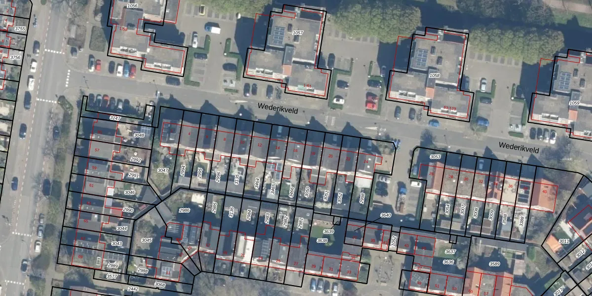 Wederikveld 16 is gelegen op kadastraal perceel WDN01D3466. Deze kadastrale aanduiding is uniek en wordt gebruikt door het Kadaster om eigendomsrechten en andere zakelijke rechten vast te leggen. Het perceel maakt onderdeel uit van de kadastrale gemeente Woerden.