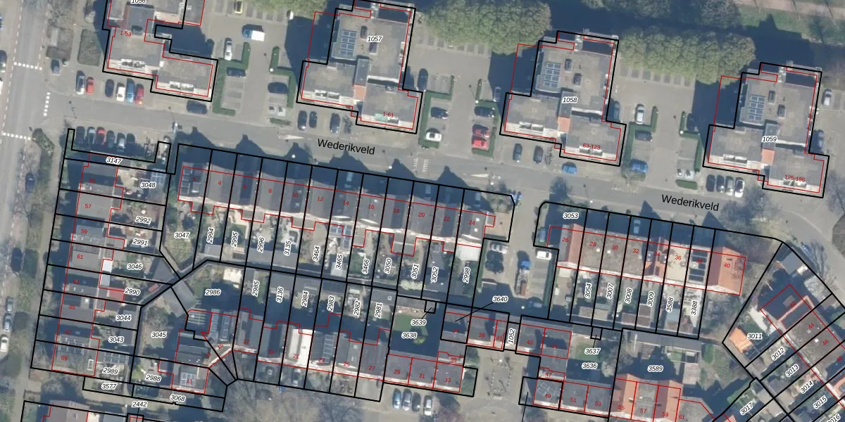 Wederikveld 20 is gelegen op kadastraal perceel WDN01D3051. Deze kadastrale aanduiding is uniek en wordt gebruikt door het Kadaster om eigendomsrechten en andere zakelijke rechten vast te leggen. Het perceel maakt onderdeel uit van de kadastrale gemeente Woerden.
