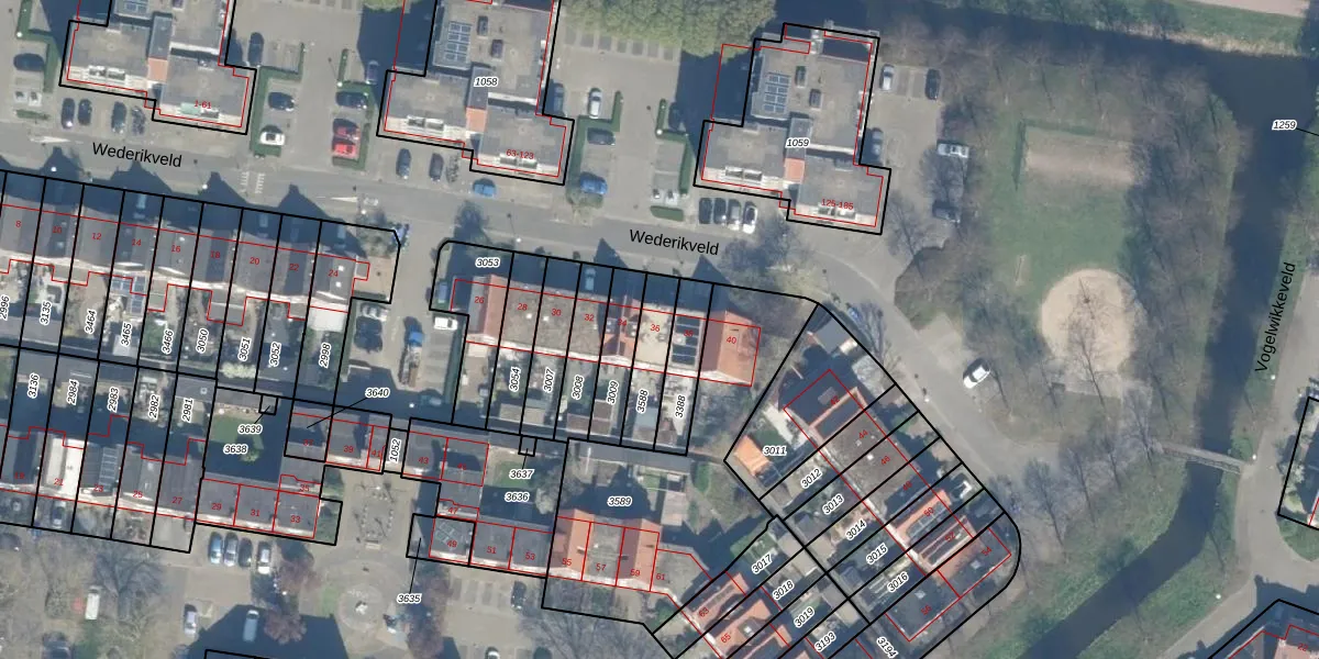 Wederikveld 36 is gelegen op kadastraal perceel WDN01D3588. Deze kadastrale aanduiding is uniek en wordt gebruikt door het Kadaster om eigendomsrechten en andere zakelijke rechten vast te leggen. Het perceel maakt onderdeel uit van de kadastrale gemeente Woerden.